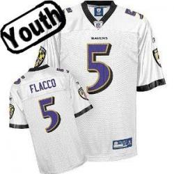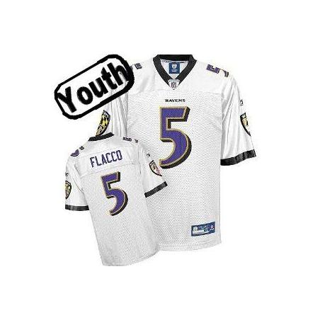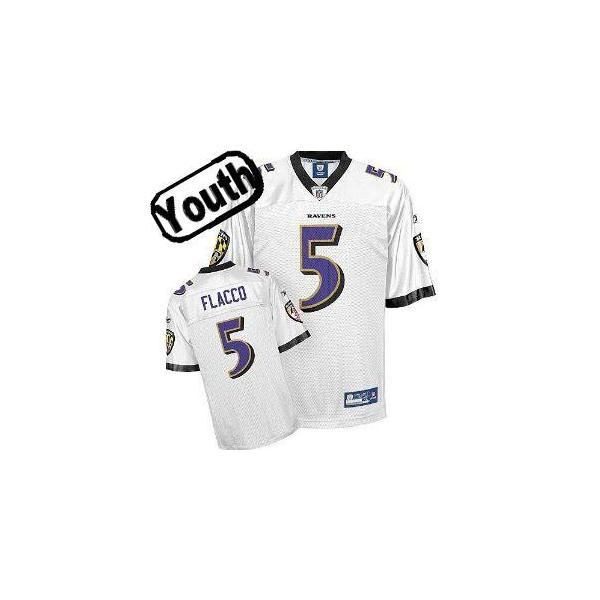 Joe Flacco Youth Football Jersey -#5 Baltimore Youth Jersey(White) For Sale