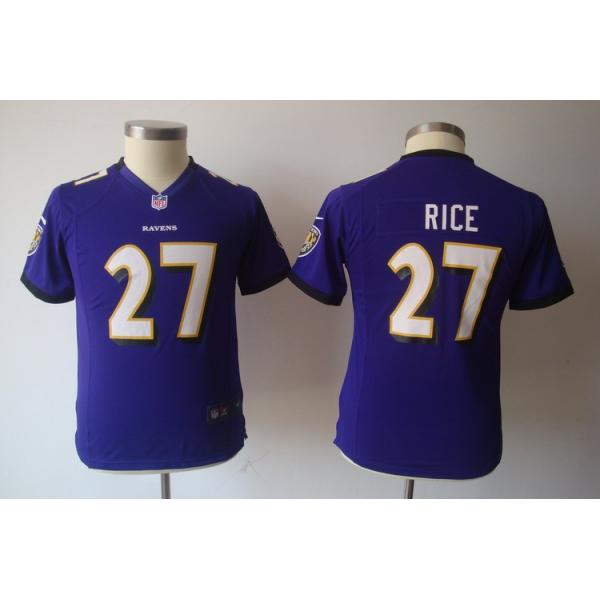 This youth football jersey features the Screenprinted name(RICE) and the number(#27), decorated with team color. Buy your Baltimore #27 Ray Rice youth football jersey today.