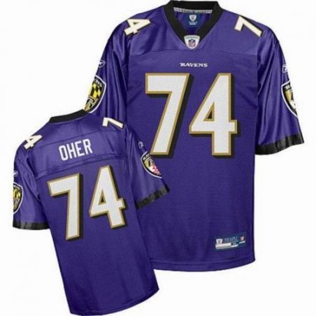 This Michael Oher Football Jersey is made of 100% polyester(diamond back mesh, durable and fast drying)Letters(OHER) and numbers(74) are sewn on.Baltimore team logos and wordmarks are stitched, when applicable. Free shipping and 45days returnable.