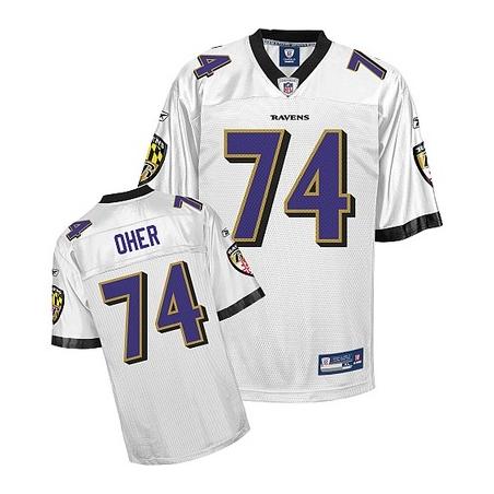 This Michael Oher Football Jersey is made of 100% polyester(diamond back mesh, durable and fast drying)Letters(OHER) and numbers(74) are sewn on.Baltimore team logos and wordmarks are stitched, when applicable. Free shipping and 45days returnable.