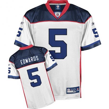 This Trent Edwards Football Jersey is made of 100% polyester(diamond back mesh, durable and fast drying)Letters(EDWARDS) and numbers(5) are sewn on.Buffalo team logos and wordmarks are stitched, when applicable. Free shipping and 45days returnable.