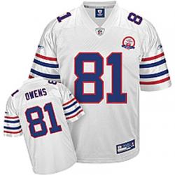 This Terrell Owens Football Jersey is made of 100% polyester(diamond back mesh, durable and fast drying)Letters(OWENS) and numbers(81) are sewn on.Buffalo team logos and wordmarks are stitched, when applicable. Free shipping and 45days returnable.