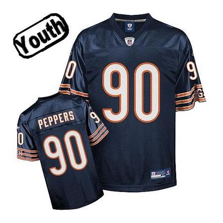 This Julius Peppers Youth Football Jersey is made of 100% polyester(diamond back mesh durable and fast drying)Letters(PEPPERS) and numbers(90) are sewn on. Chicago team logos and wordmarks are stitched when applicable.Free shipping and 45days returnable..