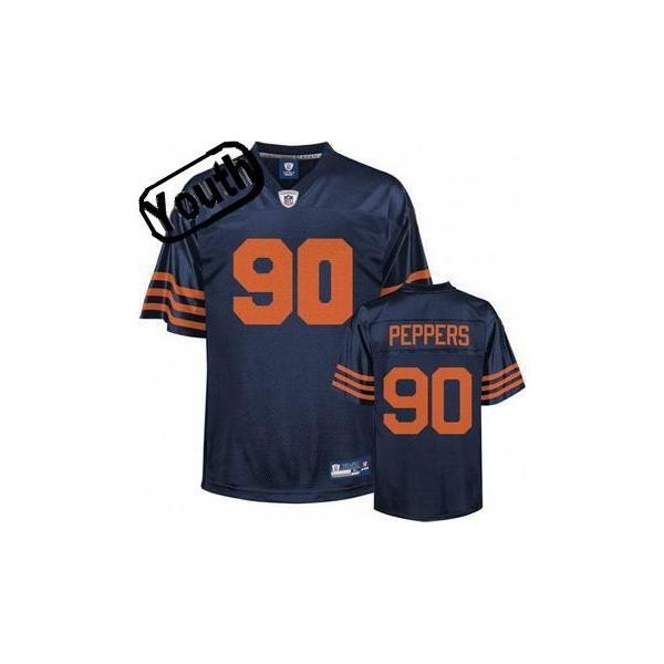 This Julius Peppers Youth Football Jersey is made of 100% polyester(diamond back mesh durable and fast drying)Letters(PEPPERS) and numbers(90) are sewn on. Chicago team logos and wordmarks are stitched when applicable.Free shipping and 45days returnable..