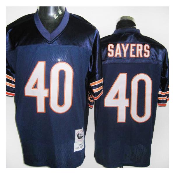 This Gale Sayers Football Jersey is made of 100% polyester(diamond back mesh, durable and fast drying)Letters(SAYERS) and numbers(40) are sewn on.Chicago team logos and wordmarks are stitched, when applicable. Free shipping and 45days returnable.