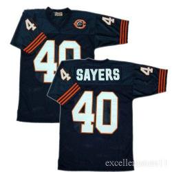 This Gale Sayers Football Jersey is made of 100% polyester(diamond back mesh, durable and fast drying)Letters(SAYERS) and numbers(40) are sewn on.Chicago team logos and wordmarks are stitched, when applicable. Free shipping and 45days returnable.