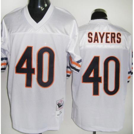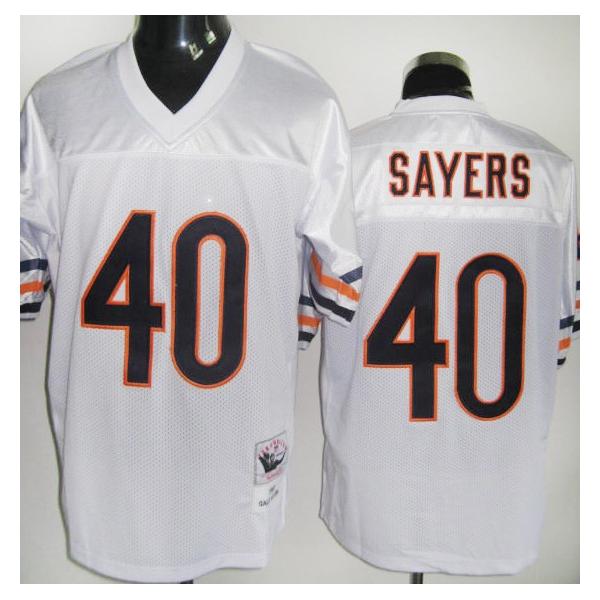 This Gale Sayers Football Jersey is made of 100% polyester(diamond back mesh, durable and fast drying)Letters(SAYERS) and numbers(40) are sewn on.Chicago team logos and wordmarks are stitched, when applicable. Free shipping and 45days returnable.
