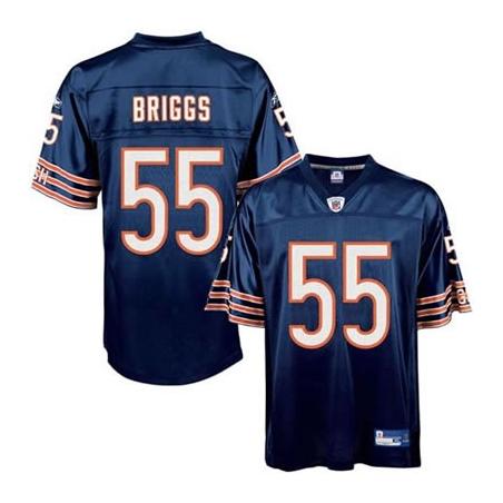 This Lance Briggs Football Jersey is made of 100% polyester(diamond back mesh, durable and fast drying)Letters(BRIGGS) and numbers(55) are sewn on.Chicago team logos and wordmarks are stitched, when applicable. Free shipping and 45days returnable.