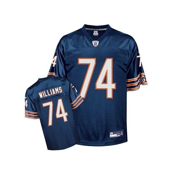 This Chris Williams Football Jersey is made of 100% polyester(diamond back mesh, durable and fast drying)Letters(WILLIAMS) and numbers(74) are sewn on.Chicago team logos and wordmarks are stitched, when applicable. Free shipping and 45days returnable.