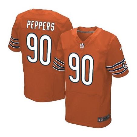 Be ready to get into this game season with this Chicago Julius Peppers elite jersey! It features your favorite player's number #90 in tackle twill fabric stitched on the front, back&shoulders and the player's name PEPPERS are sewn on the upper portion of the back. For the purpose of long-lasting durability and easy movements, this Orange Peppers Chicago elite jersey is made of heavier-weight materials and has an athletic cut. That does not feel like a T-shirt but will fits snug in the chest and shoulders. Besides, the two mesh side panels will provide additional breathability for the Julius Peppers fans. Having all details as the gear your hero wears on the field, this Chicago Julius Peppers elite jersey will offer you a truly authentic experience!