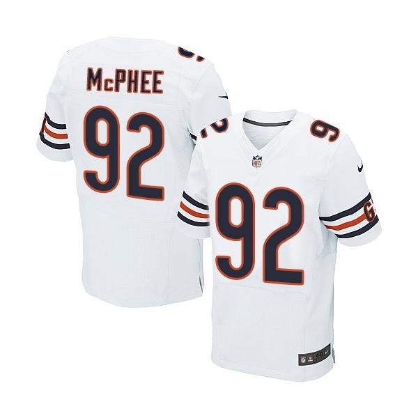 Be ready to get into this game season with this Chicago Pernell McPhee elite jersey! It features your favorite player's number #92 in tackle twill fabric stitched on the front, back&shoulders and the player's name MCPHEE are sewn on the upper portion of the back. For the purpose of long-lasting durability and easy movements, this White McPhee Chicago elite jersey is made of heavier-weight materials and has an athletic cut. That does not feel like a T-shirt but will fits snug in the chest and shoulders. Besides, the two mesh side panels will provide additional breathability for the Pernell McPhee fans. Having all details as the gear your hero wears on the field, this Chicago Pernell McPhee elite jersey will offer you a truly authentic experience!