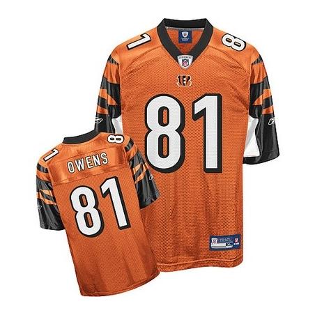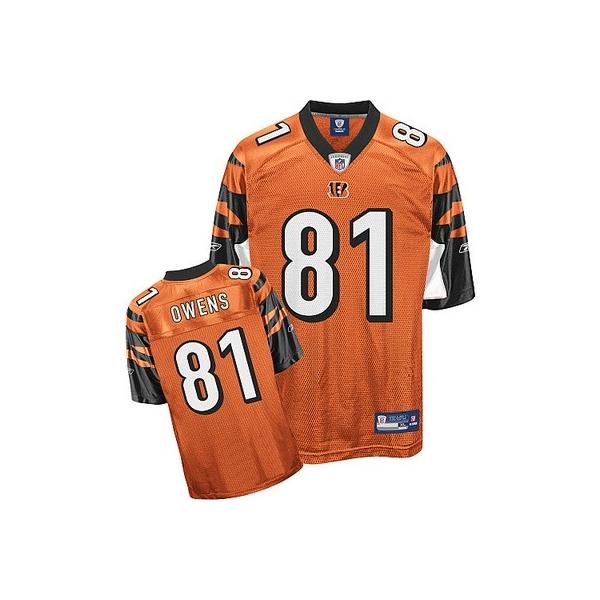 This Terrell Owens Football Jersey is made of 100% polyester(diamond back mesh, durable and fast drying)Letters(OWENS) and numbers(81) are sewn on.Cincinnati team logos and wordmarks are stitched, when applicable. Free shipping and 45days returnable.