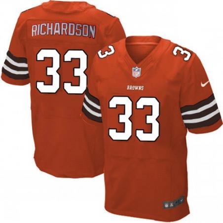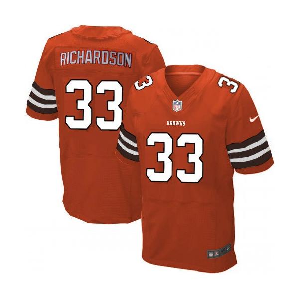 This football jersey features the sewn-on name(RICHARDSON) and numbers(#33), decorated with Cleveland team color. Buy your Trent Richardson football jersey today.