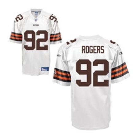 This Shaun Rogers Football Jersey is made of 100% polyester(diamond back mesh, durable and fast drying)Letters(ROGERS) and numbers(92) are sewn on.Cleveland team logos and wordmarks are stitched, when applicable. Free shipping and 45days returnable.