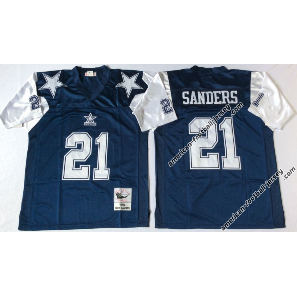 Deion Sanders Football Jersey, Dallas #21 Jersey(Blue Throwback)