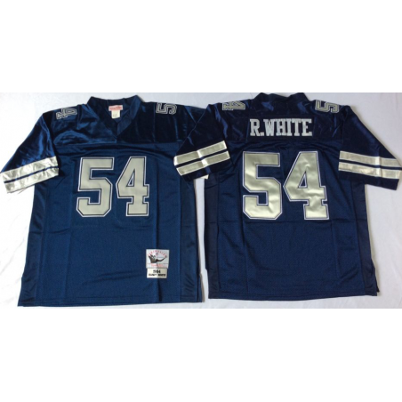 Letters(R.WHITE) and numbers(54) are sewn on. Dallas football team logos and wordmarks are stitched, when applicable.