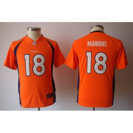 [NEW] Peyton Manning Youth Football Jersey -#18 Denver Youth Jerseys (Orange)