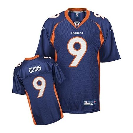 This Brady Quinn Football Jersey is made of 100% polyester(diamond back mesh, durable and fast drying)Letters(QUINN) and numbers(9) are sewn on.Denver team logos and wordmarks are stitched, when applicable. Free shipping and 45days returnable.