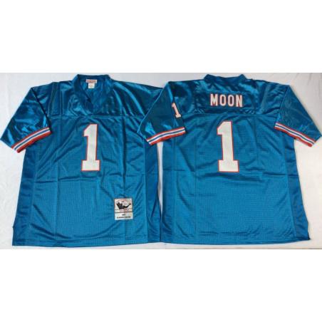 Warren Moon Oilers Football Jersey - Oilers #1 Football Jersey(Blue Throwback)
