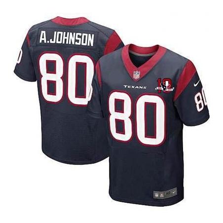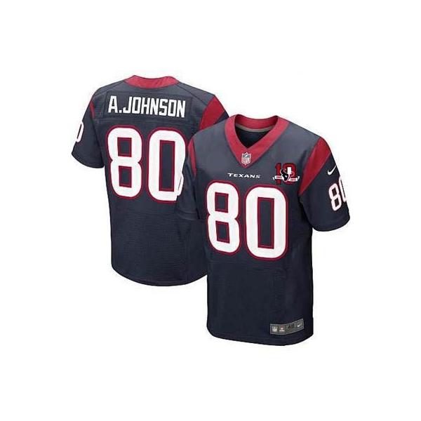 Letters & numbers are sewn on. 2012 new design for Houston Football Team. NWT, Free Shipping, 45Days easy return/exchange. [Elite] Andre Johnson Football Jersey -Houston #80 Football Jersey(Blue 10 Anniversary) On Sale.
