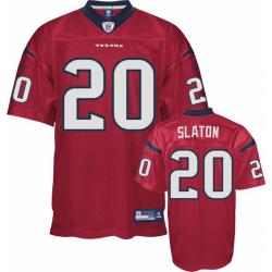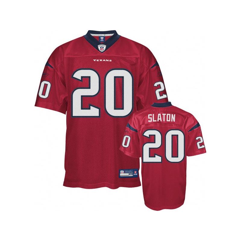 This Steve Slaton Football Jersey is made of 100% polyester(diamond back mesh, durable and fast drying)Letters(SLATON) and numbers(20) are sewn on.Houston team logos and wordmarks are stitched, when applicable. Free shipping and 45days returnable.