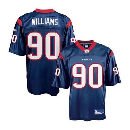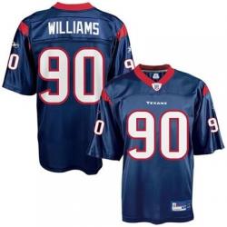 This Mario Williams Football Jersey is made of 100% polyester(diamond back mesh, durable and fast drying)Letters(WILLIAMS) and numbers(90) are sewn on.Houston team logos and wordmarks are stitched, when applicable. Free shipping and 45days returnable.