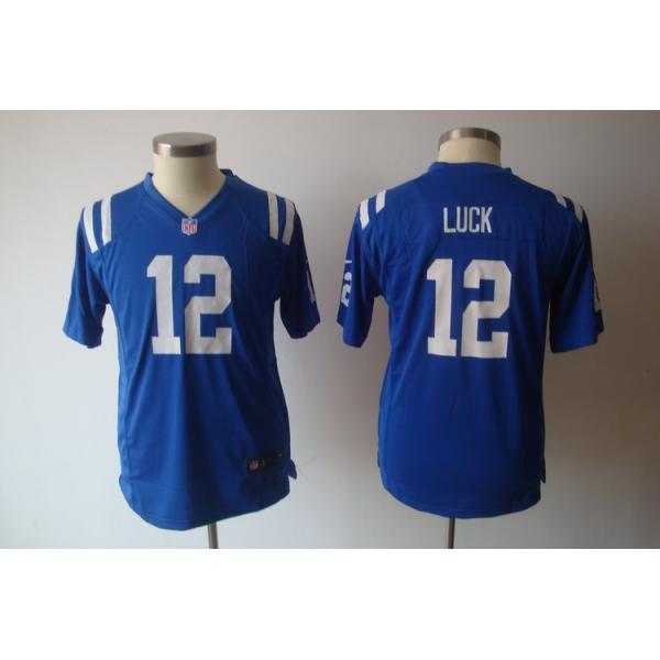 This youth football jersey features the Screenprinted name(LUCK) and the number(#12), decorated with team color. Buy your Indianapolis #12 Andrew Luck youth football jersey today.