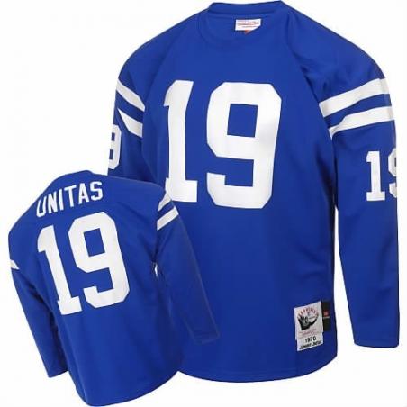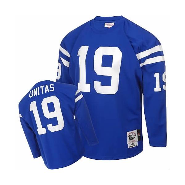 Johnny Unitas Indianapolis Football Jersey - Indianapolis #19 Football Jersey(Blue Throwback long sleeves)