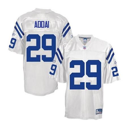This Joseph Addai Football Jersey is made of 100% polyester(diamond back mesh, durable and fast drying)Letters(ADDAI) and numbers(29) are sewn on.Indianapolis team logos and wordmarks are stitched, when applicable. Free shipping and 45days returnable.