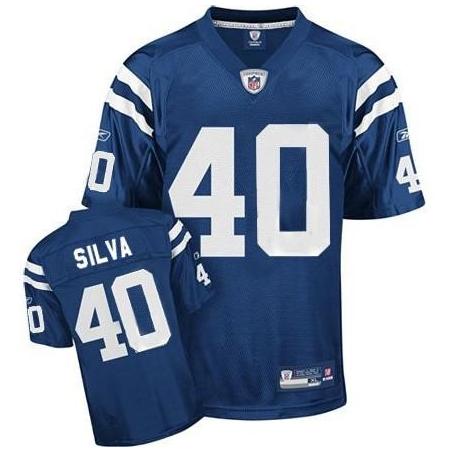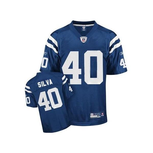 This Jamie Silva Football Jersey is made of 100% polyester(diamond back mesh, durable and fast drying)Letters(SILVA) and numbers(40) are sewn on.Indianapolis team logos and wordmarks are stitched, when applicable. Free shipping and 45days returnable.