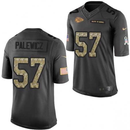 In recent years, NFL release a new style of Salute to Service jersey yearly. The Anthracite Salute to Service jersey was released in 2016. This Kansas City football team Al Palewicz Anthracite Salute to Service jersey is really a smart product to combine the most popular sport in the US with the honoring America's veterans. It features your favorite players number " #57 " in camo pattern displayed on the front and the back, while, the team logo patch and the "SALUTE TO SERVICE" patch lie at the right chest an left chest separately. Cheer up for Chiefs and Al Palewicz and show your respect to the sacrifices made by our military and their families in this Palewicz Kansas City Anthracite Salute to Service football jersey. Let the world know you're a true fan of Al Palewicz!