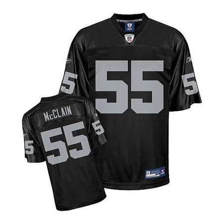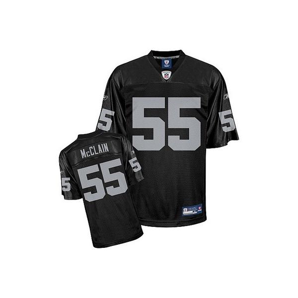 This Rolando McClain Football Jersey is made of 100% polyester(diamond back mesh, durable and fast drying)Letters(MCCLAIN) and numbers(55) are sewn on.Oakland team logos and wordmarks are stitched, when applicable. Free shipping and 45days returnable.