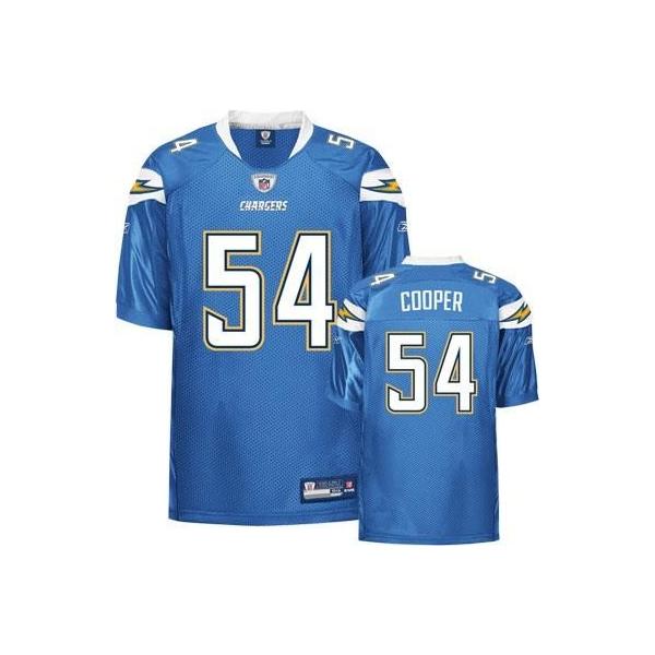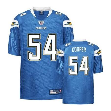 This Stephen Cooper Football Jersey is made of 100% polyester(diamond back mesh, durable and fast drying)Letters(COOPER) and numbers(54) are sewn on.San Diego team logos and wordmarks are stitched, when applicable. Free shipping and 45days returnable.