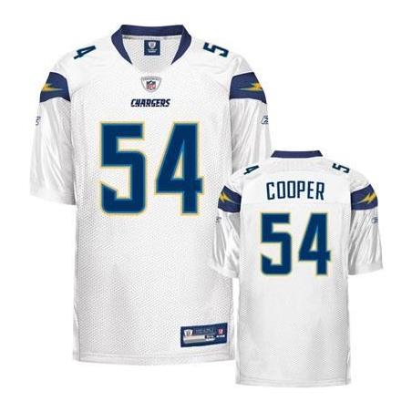 This Stephen Cooper Football Jersey is made of 100% polyester(diamond back mesh, durable and fast drying)Letters(COOPER) and numbers(54) are sewn on.San Diego team logos and wordmarks are stitched, when applicable. Free shipping and 45days returnable.