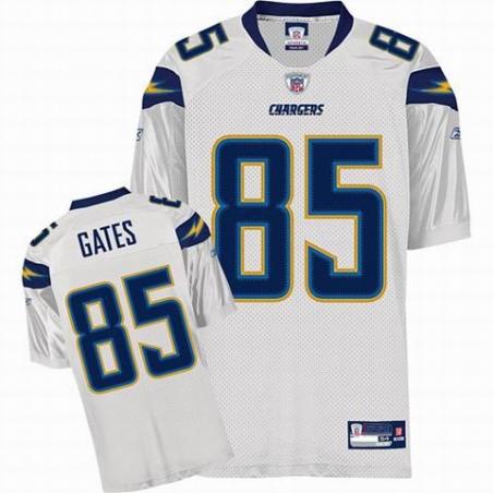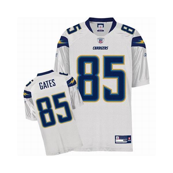 Letters(GATES) and numbers(85) are sewn on. San Diego football team logos and wordmarks are stitched, when applicable.