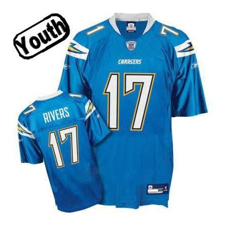 Philip Rivers Youth Football Jersey -#17 San Diego Youth Jersey(Light Blue) For Sale