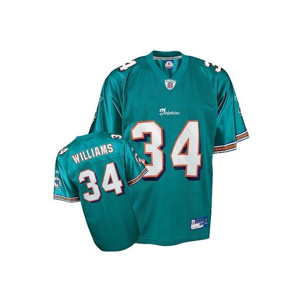 This Ricky Williams Football Jersey is made of 100% polyester(diamond back mesh, durable and fast drying)Letters(WILLIAMS) and numbers(34) are sewn on.Miami team logos and wordmarks are stitched, when applicable. Free shipping and 45days returnable.