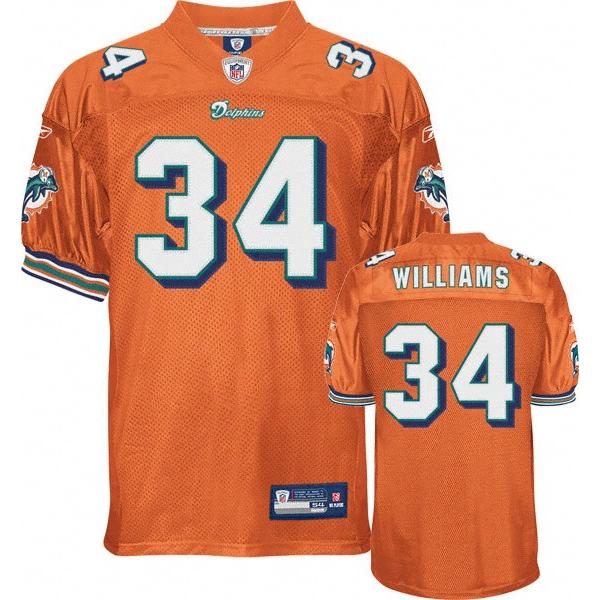 This Ricky Williams Football Jersey is made of 100% polyester(diamond back mesh, durable and fast drying)Letters(WILLIAMS) and numbers(34) are sewn on.Miami team logos and wordmarks are stitched, when applicable. Free shipping and 45days returnable.