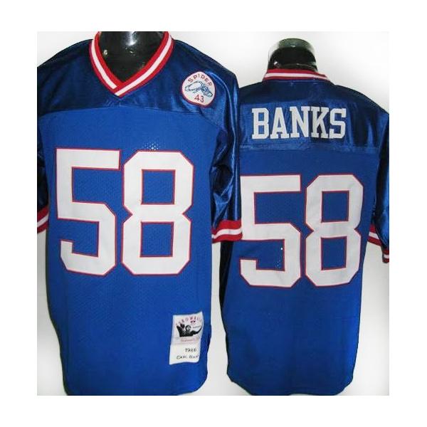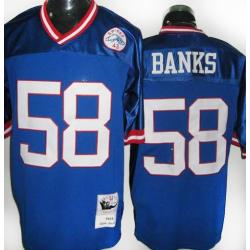 This Carl Banks Football Jersey is made of 100% polyester(diamond back mesh, durable and fast drying)Letters(BANKS) and numbers(58) are sewn on.NY-G team logos and wordmarks are stitched, when applicable. Free shipping and 45days returnable.