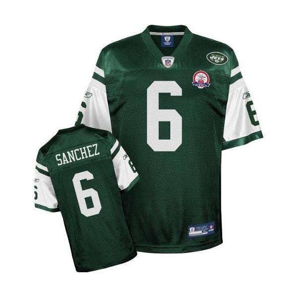 This Mark Sanchez Football Jersey is made of 100% polyester(diamond back mesh, durable and fast drying)Letters(SANCHEZ) and numbers(6) are sewn on.NY-Y team logos and wordmarks are stitched, when applicable. Free shipping and 45days returnable.