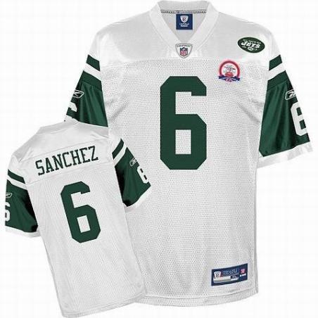 This Mark Sanchez Football Jersey is made of 100% polyester(diamond back mesh, durable and fast drying)Letters(SANCHEZ) and numbers(6) are sewn on.NY-Y team logos and wordmarks are stitched, when applicable. Free shipping and 45days returnable.