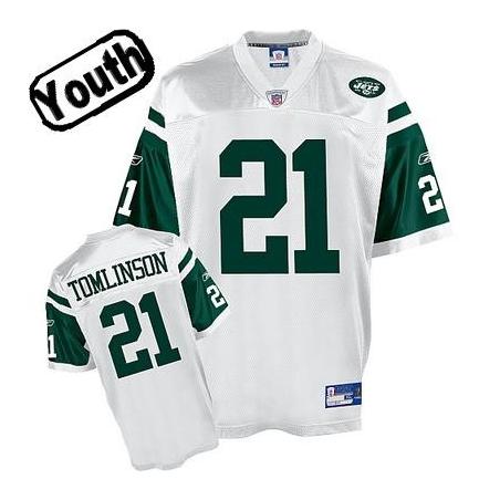 Ladainian Tomlinson Youth Football Jersey -#21 NY-J Youth Jersey(White) For Sale