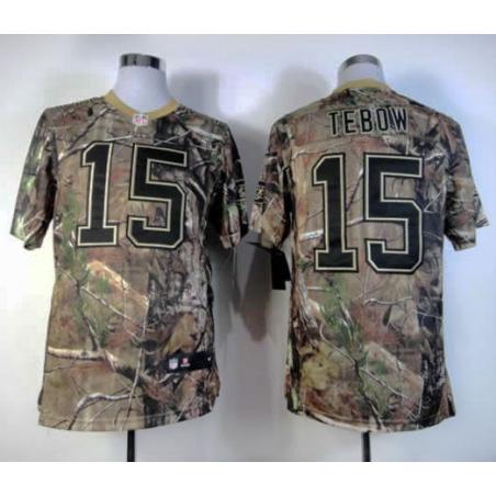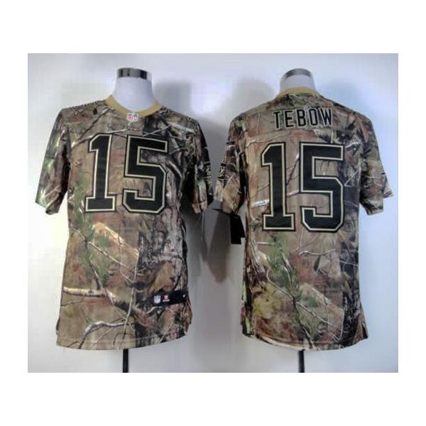 This Tim Tebow camo football jersey is decorated with realtree camo,sewn on letters(TEBOW)&numbers(#15), and embroidered NY-J team logos&wordmarks