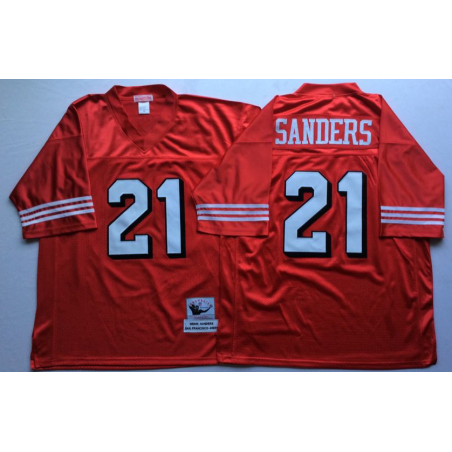 Red San Francisco Sanders throwback jersey for men. Just same as Deion Sanders's onfield performance apparel. Sewn on name (SANDERS) and numbers (#21). Stitched team graphics and logos(where applicable). Free Shipping. Satisfaction Guaranteed!