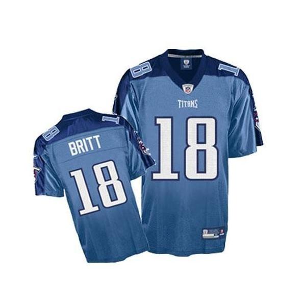 This Kenny Britt Football Jersey is made of 100% polyester(diamond back mesh, durable and fast drying)Letters(BRITT) and numbers(18) are sewn on.Tennessee team logos and wordmarks are stitched, when applicable. Free shipping and 45days returnable.