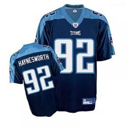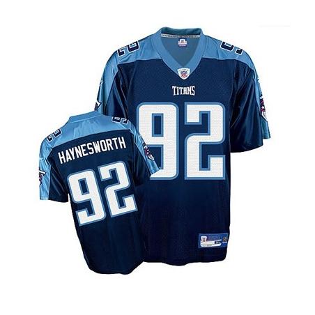 This Albert Haynesworth Football Jersey is made of 100% polyester(diamond back mesh, durable and fast drying)Letters(HAYNESWORTH) and numbers(92) are sewn on.Tennessee team logos and wordmarks are stitched, when applicable. Free shipping and 45days returnable.