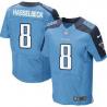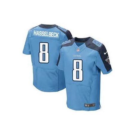Be ready to get into this game season with this Tennessee Matt Hasselbeck elite jersey! It features your favorite player's number #8 in tackle twill fabric stitched on the front, back&shoulders and the player's name HASSELBECK are sewn on the upper portion of the back. For the purpose of long-lasting durability and easy movements, this Light Blue Hasselbeck Tennessee elite jersey is made of heavier-weight materials and has an athletic cut. That does not feel like a T-shirt but will fits snug in the chest and shoulders. Besides, the two mesh side panels will provide additional breathability for the Matt Hasselbeck fans. Having all details as the gear your hero wears on the field, this Tennessee Matt Hasselbeck elite jersey will offer you a truly authentic experience!